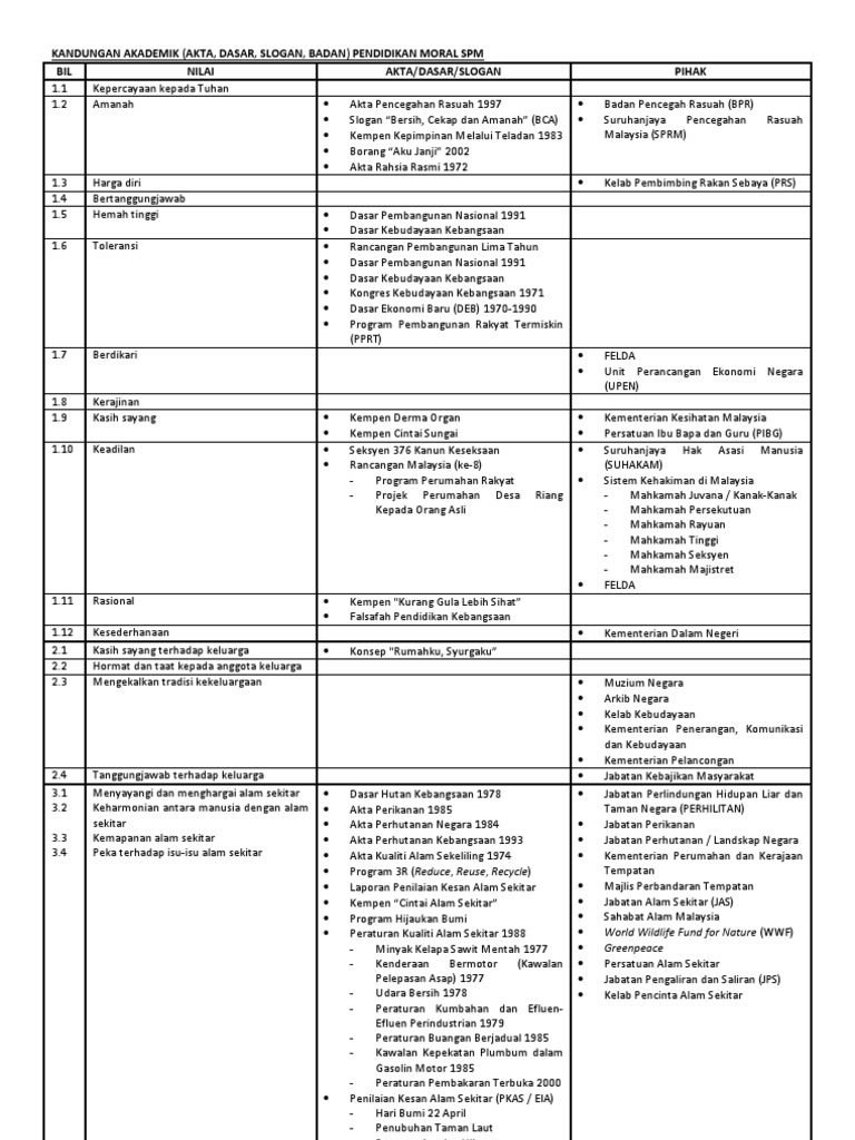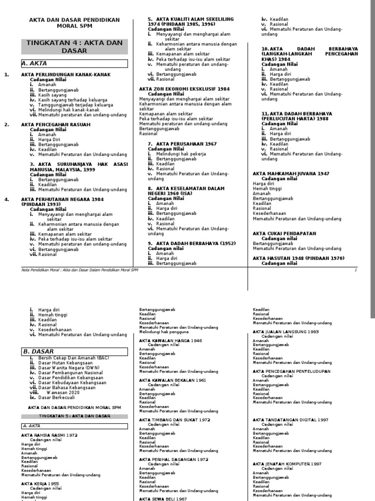 Pendidikan Moral Akta List : Artikel kali ini juga akan menyajikan contoh pidato tentang pendidikan, khususnya pendidikan moral.. Pendidikan moral ialah mata pelajaran yang wajib bagi pelajar warganegara malaysia bukan islam yang menuntut di institusi pengajian tinggi swasta di negara malaysia di bawah subseksyen 43 (1) akta 555 (akta ipts). Pdf drive investigated dozens of problems and listed the biggest global issues facing the world today. In malaysia, pendidikan moral (malay for moral studies) is one of the core subjects in the sijil pelajaran malaysia (spm) examination. Laut 1982 akta zon ekonomi ekslusif 1984 akta pelantar benua 1966 akta hasutan 1948 pindaan 1970 pindaan perlembagaan 1971 perlembagaan malaysia (perkara 11 (1) , 3 (1)) akta pendidikan 1996. Mulai jean piaget, lawrence kolhberg, marvin.